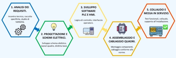 Offriamo un servizio completo: dalla progettazione elettrica e software fino alla realizzazione, collaudo e test funzionali.